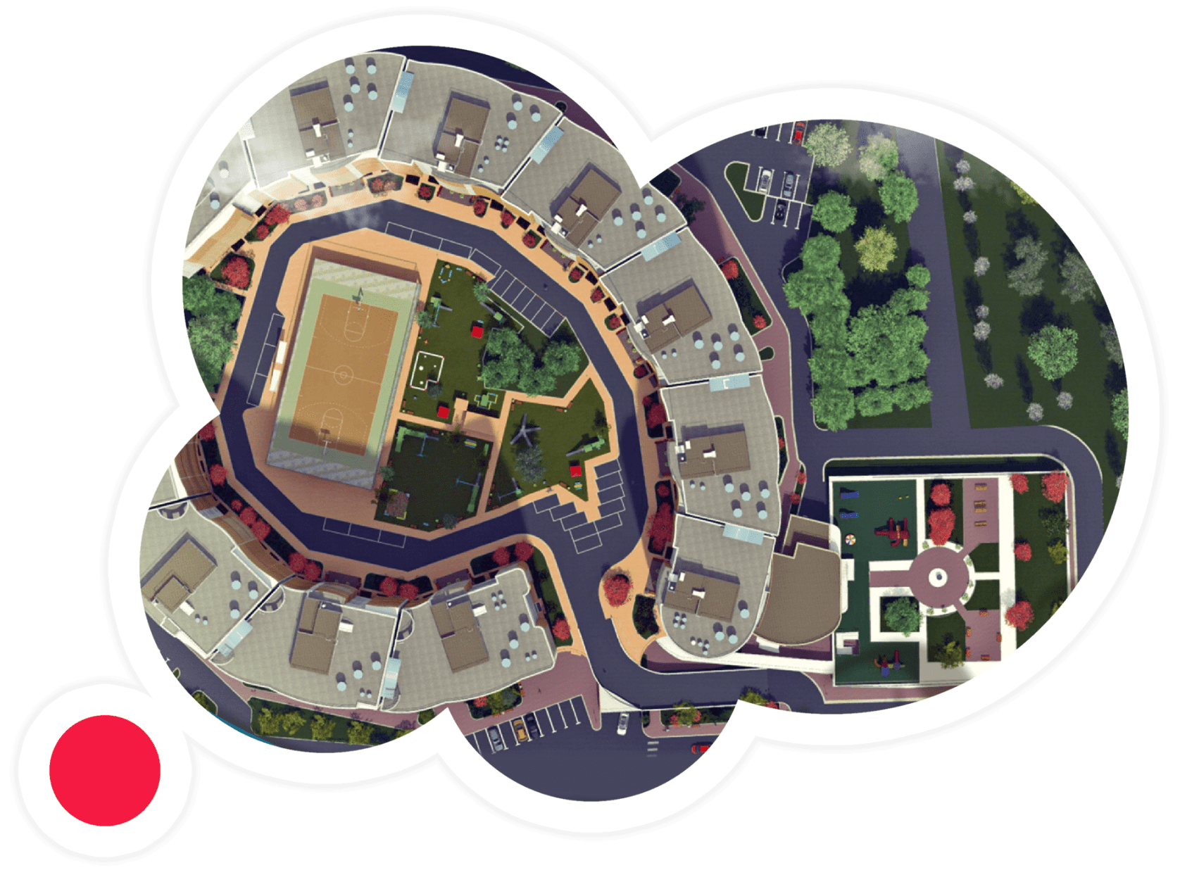 Планировочная структура жилого комплекса формирует вдоль берега р. Кубань выразительный силуэт «амфитеатра Флавиев», более известного как Колизей. Расположение домов формирует единое внутридворовое пространство и комфортный микроклимат